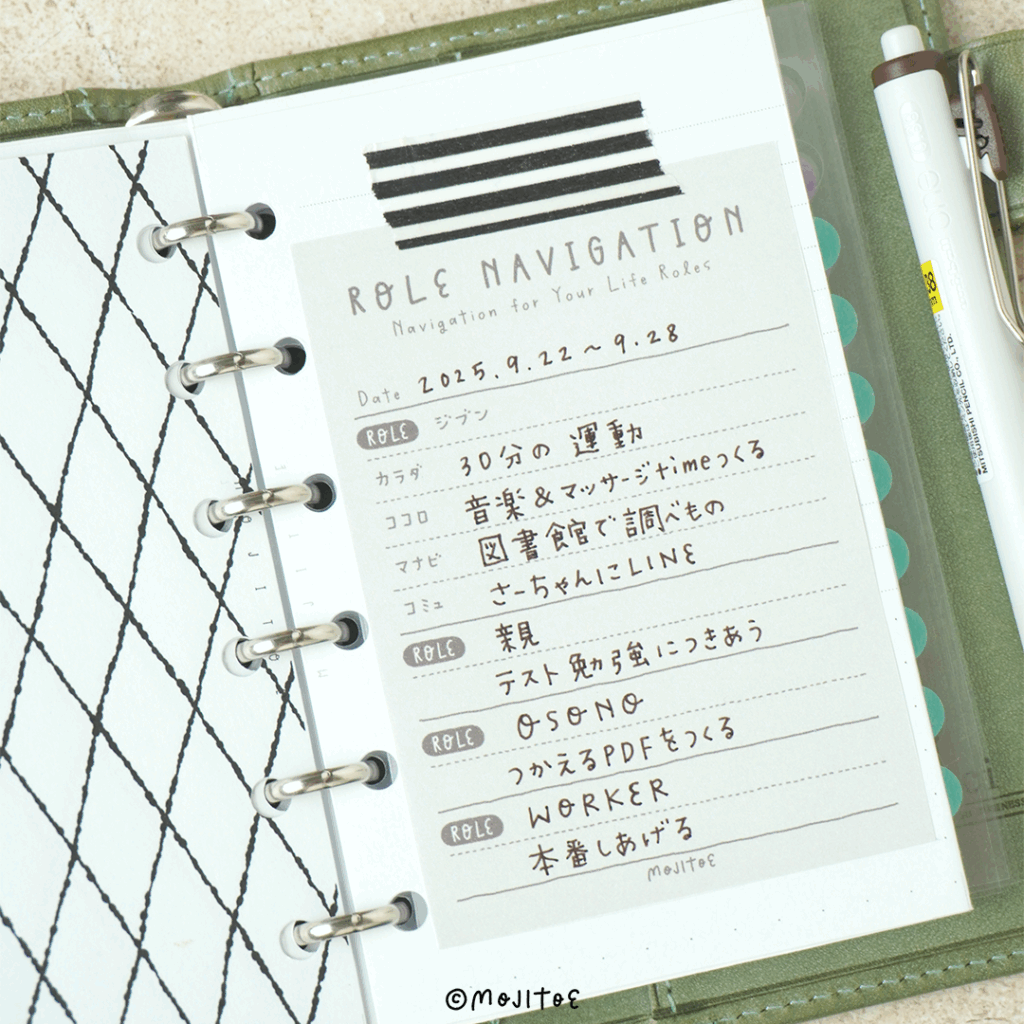 「ロールナビ」は、自分の役割ごとに大切にしたいことを整理できるメモフォーマットです。