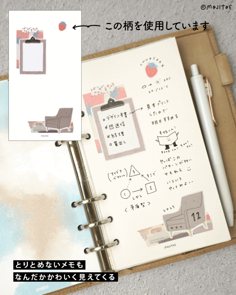 ・文字を書くと自然になじんで、とりとめのないメモも可愛く見える