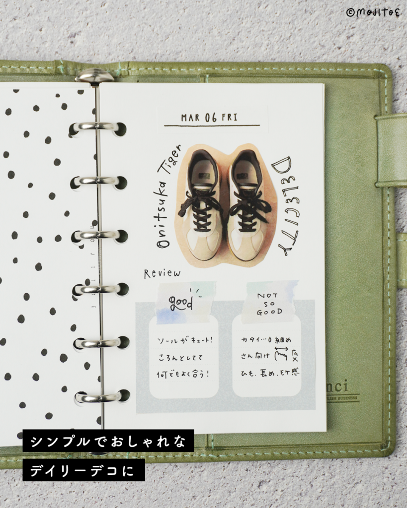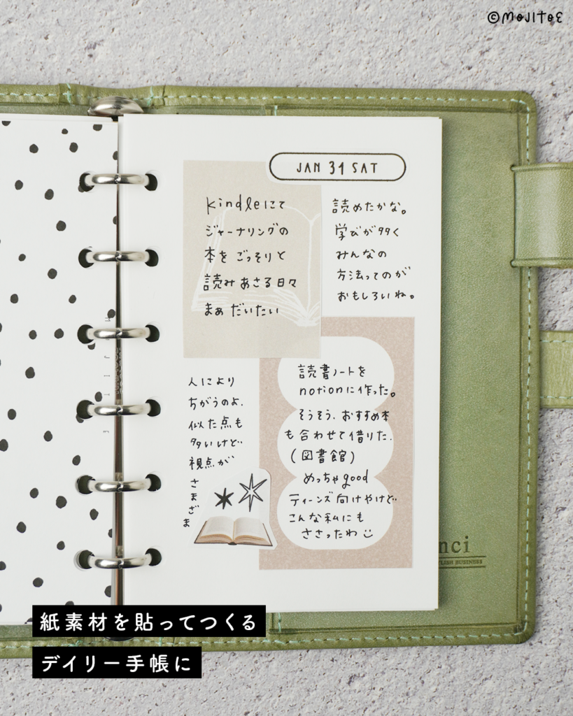 紙素材を貼ってつくるデイリー手帳のデコにもぴったり。