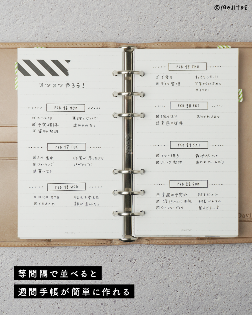 週間手帳レイアウトも簡単に作れるのもポイント。