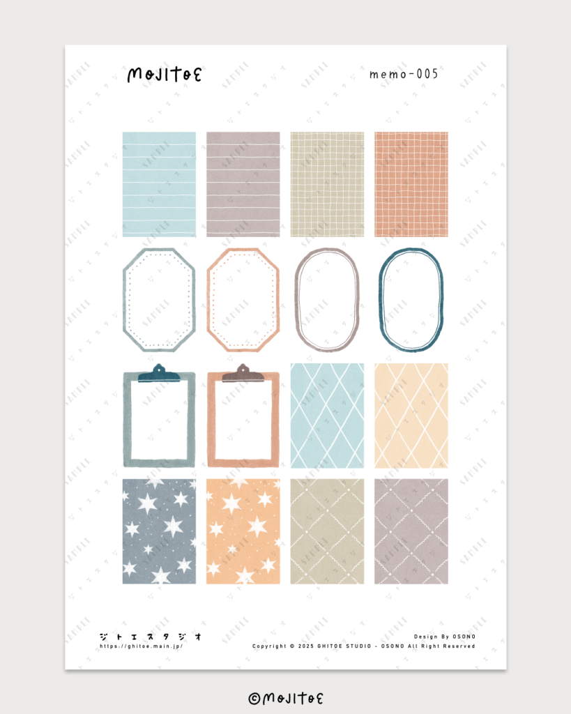 2025.03.25 お知らせ 手帳素材PDF「エモカラー ミニメモ」をアップしました osono 手帳デコに便利なミニメモ♪ 郷愁感あるしみじみエモカラーの16柄セットです。落ち着きのある手帳デコが好きな人にピッタリ! BOOTHの販売ページへ【手帳素材PDF】エモカラー ミニメモ 気になった方はぜひBOOTHの販売ページをチェックしてみてくださいね♪ #PDF#くすみカラー#ミニメモ ABOUT ME OSONOコンテンツクリエイターXInstagramYouTubeContact京都在住のコンテンツクリエイター🎨 文字やイラストの描き方、手帳デコのアイデアなどを中心に 手帳やノートの使い方・書き方・楽しさを提案しています📖 『大好きなカラーペンでワクワク広がる!簡単デザイン文字』(翔泳社)『イメージとレイアウトで探しやすい 手描き文字&簡単イラスト アイデア帳』(KADOKAWA)ほか、以前の活動名「今田里美」名義での著書も多数✨
