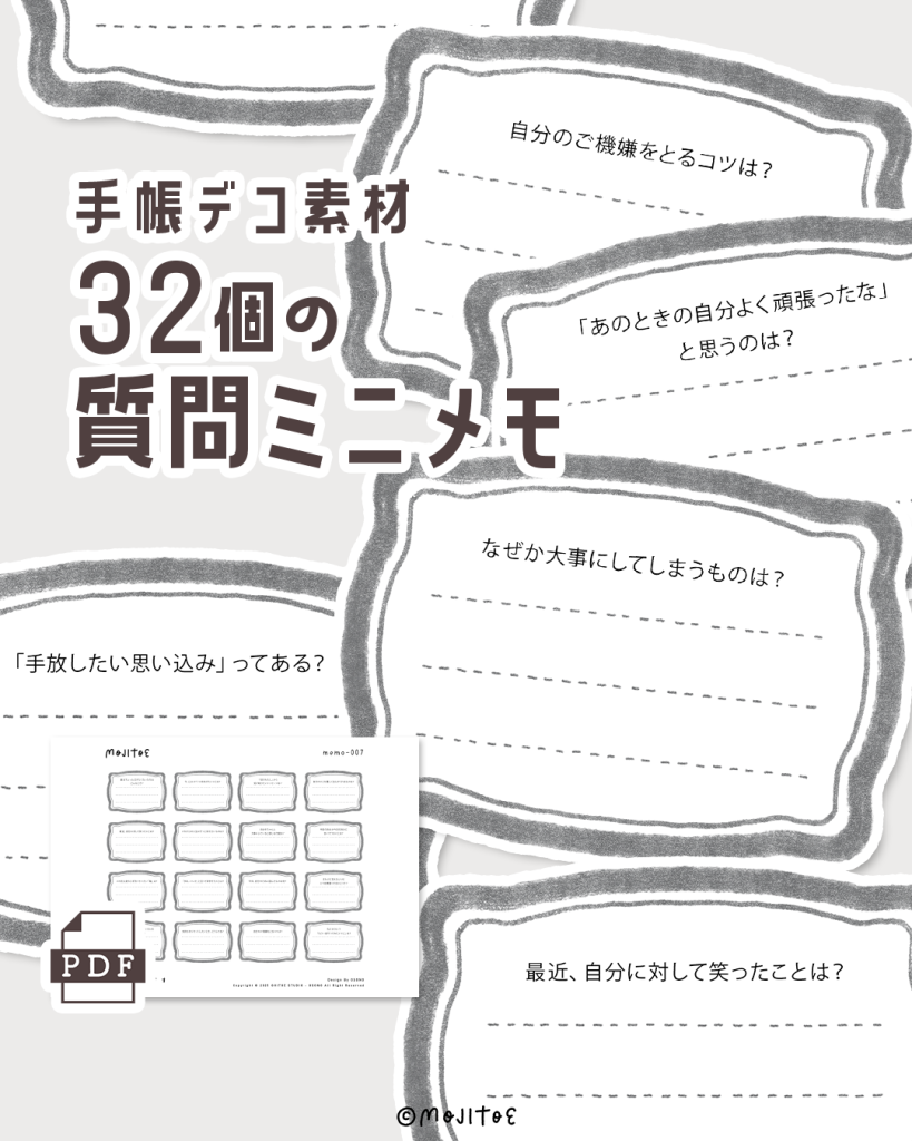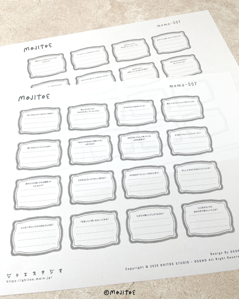 自分の内面にそっと問いかける、ラベル柄の小さな質問入りミニメモ。