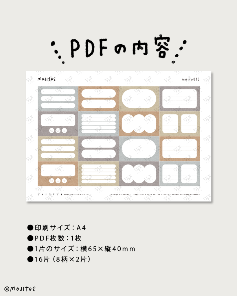 組み合わせて使えるメモ素材のPDFです。