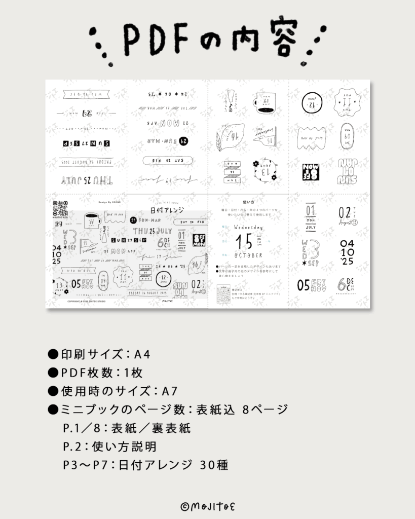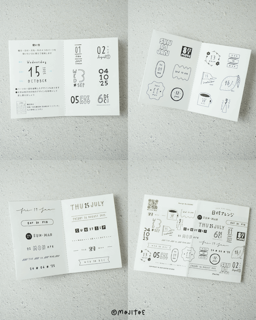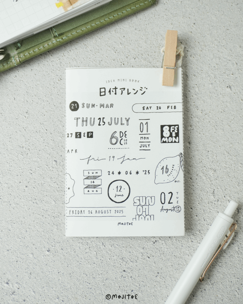 おしゃれな日付デザインが30種類詰まったミニブック。