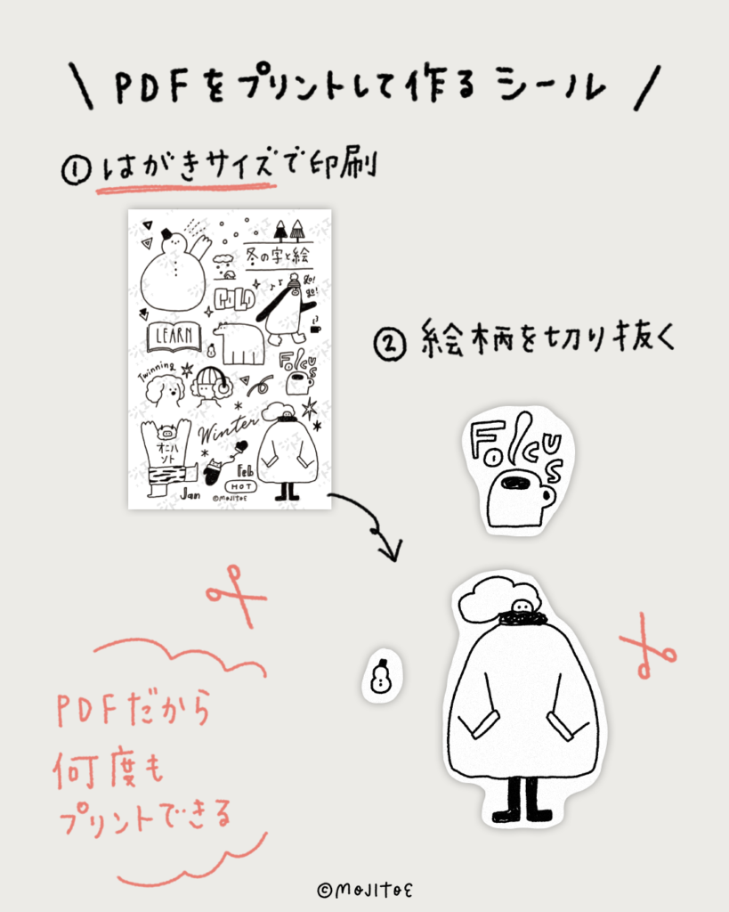 手帳やノートをかわいく彩れる、印刷して使うシール用PDFです。